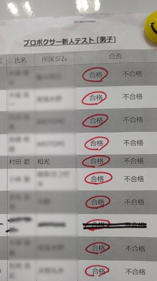 お知らせ 試合結果・予定 当ジム所属選手がプロテストに合格しました